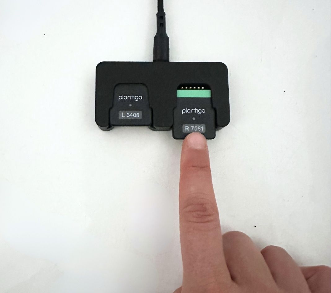 Dock the pods. Insert the pods into the dock with the Plantiga logo facing upwards.
