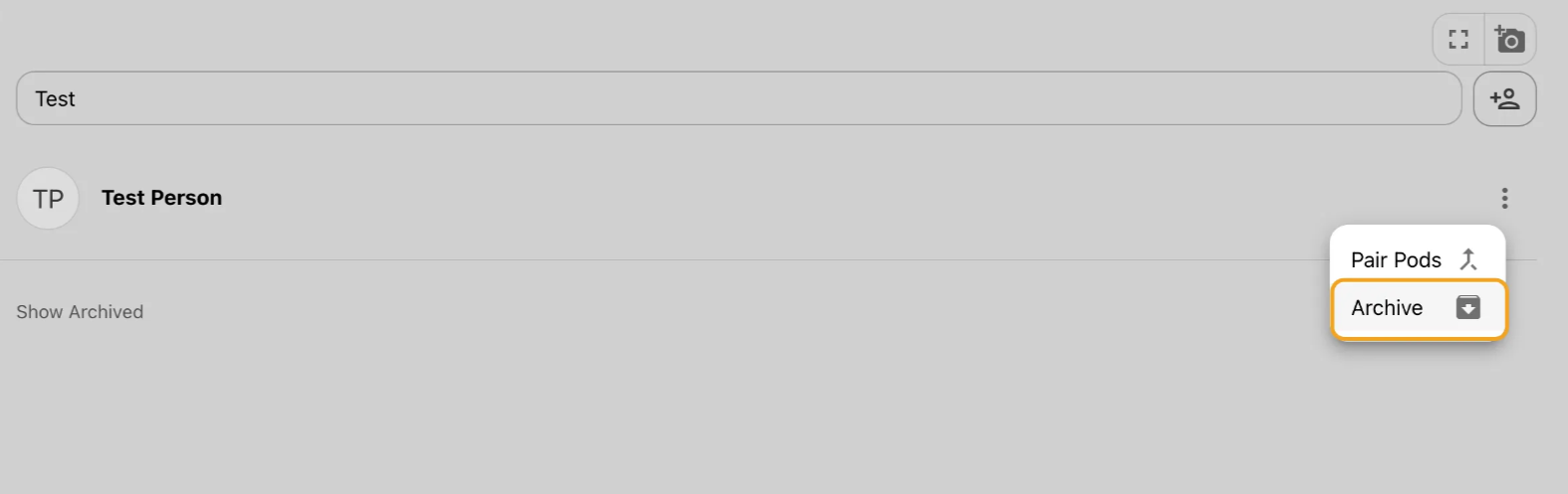 To unarchive a person, scroll to the bottom of your people page or search for their name and click SHOW ARCHIVED, then click on the menu next to their name once it appears and select Unarchive.
