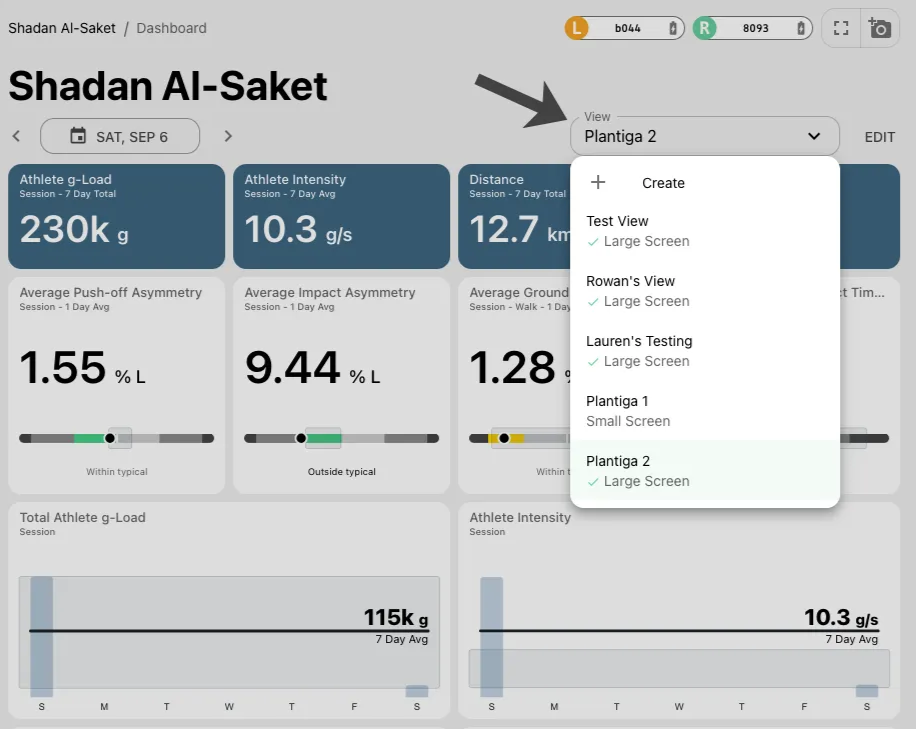 Click VIEW to create multiple groups and switch between Dashboard views. You can customize views for individual athletes or answer questions that matter most to you.