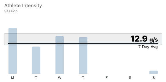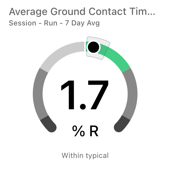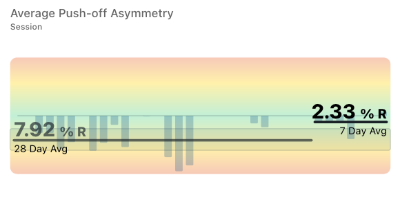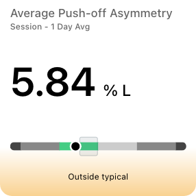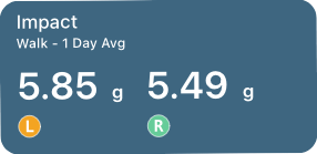 Side-to-Side Average: The left side shows the average value for the left limb and the right side shows the average value for the right limb. This widget can be selected to show the average across 1, 7 or 28 days.