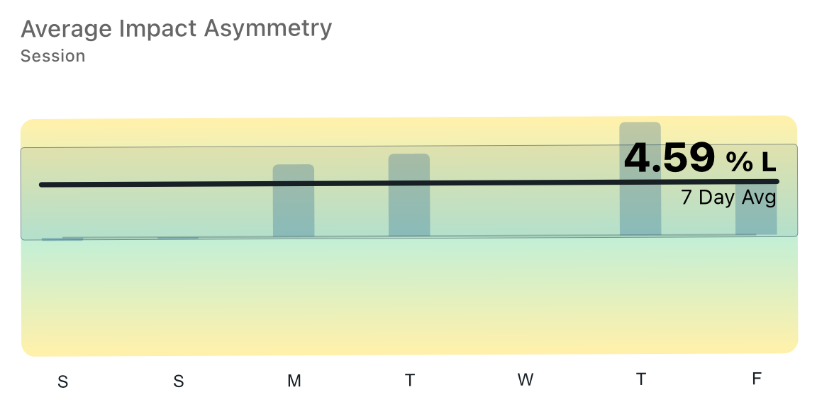 7-Day Bar Graph: Shows asymmetries and direction of asymmetry past 7 days. The horizontal band shows the typical range and the horizontal line shows the average for the week.